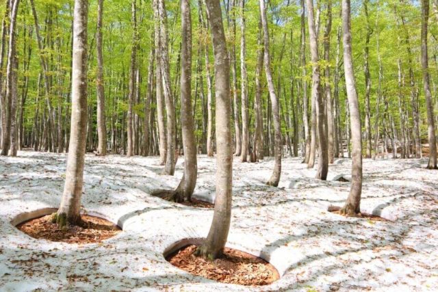 树龄约90年的山毛榉林。高高耸立,十分美丽,故称“美人林”。是很多摄影爱好者经常访问的旅游胜地。