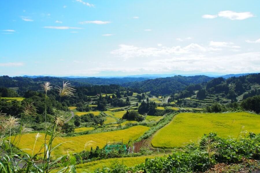 越後松代棚田群 星峠の棚田早春与晚秋时节可以看到“水镜”绝景