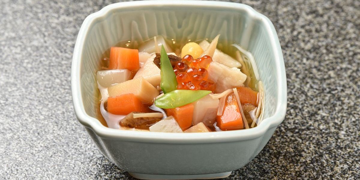 Noppe is one of Niigata’s signature local dishes. It’s a type of vegetable stew found throughout the prefecture, with the broth, ingredients, cutting style (of the ingredients), and consistency varying by region. Common ingredients include satoimo (taro root), mushrooms, and other vegetables. In winter, it may be topped with “totomame” salted salmon roe. While noppe is traditionally served at feasts for New Year’s, festivals, memorial services, and weddings, more casual versions can be found at local restaurants. If you spot it on the menu, be sure to give it a try!