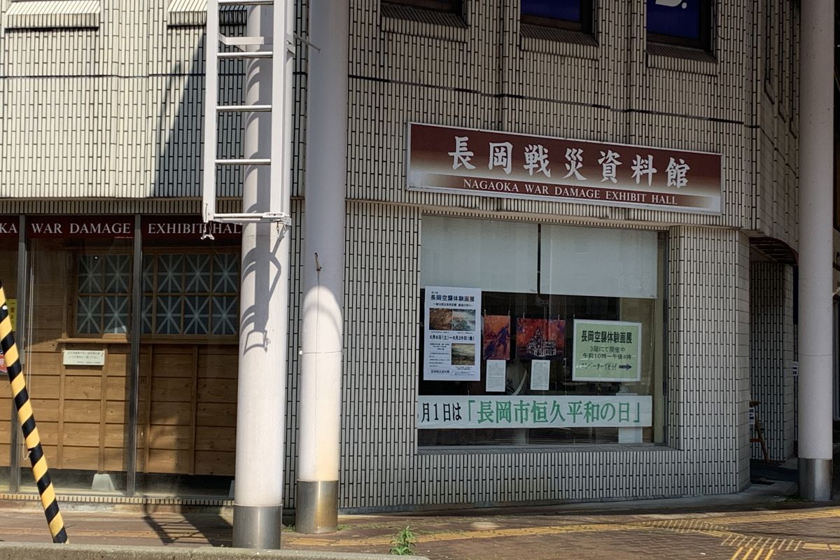Nagaoka War Damage Exhibit Hall 長岡戦災資料館 View Photos Area Nagaoka and Kashiwazaki Area Category History and Culture Tourist Facilities General Information Address新潟県長岡市城内町2-6-17 Contact Telephone Number0258-36-3269 Fax Number0258-36-3335 Website Tripadvisor Show Map View on Google Maps Food and Drinks Shopping Hot Springs and Accommodation Nature and Scenery History and Culture Tourist Facilities Outdoors and Sports Accommodation around this attraction Izumiya Sanjo Royal Hotel Sumiyoshiya Sakura-ya Inn of Four Seasons - Minoya Rankeisou Inn Yumotoya Onsen Ryokan Yudagami Onsen Ryokan Hatsune Wakatake Hotel Oyanagi Satoyama Jujo Sake Hotel Tamakiya Hinanoyado Chitose Pension La Famille Nakakaku Kofukan Takahan Niigata Toei Hotel Hatago Isen Satorikan Shiosai-no-yu Mikaku You might also be interested in… Okutadami Maruyama Ski Ground Matsudai Shibatouge Onsen "Unkai" Imayo Tsukasa Sake Brewery Toyanogata Park Tokamachi City Museum Joetsu Science Museum Kamo City Sports Fuyutorigoe Ski Garden Uonuma no Sato Ponshukan Tsubame Industrial Materials Museum Niigata Jizake Premium Sake Kura Roadside Station "Marine Dream Nou" Niigata Rice Cracker Museum Benten-iwa Rock Takayanagi (Oginoshima) Kayabuki no Sato Tsukioka Onsen Settaya Brewery Town Niigata Prefectural Museum of History Northern Culture Museum and Ito Estate Yomogihira Onsen