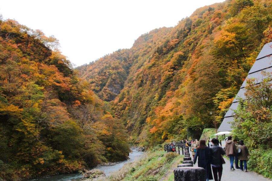Известно как одно из 3 великих ущелий Японии. Исполинские скалы, стоящие по обеим сторонам реки, формируют V-образный каньон. Динамическое сочетание величественных скал и речных порогов захватывает дух. Тоннель, построенный для любования видами ущелья, превратился в ещё более приятное пространство после обновления в 2018 году. Рядом со входом в тоннель недавно открылось здание с кафе на 1 этаже и расслабляющими горячими ваннами для ног на втором этаже.
