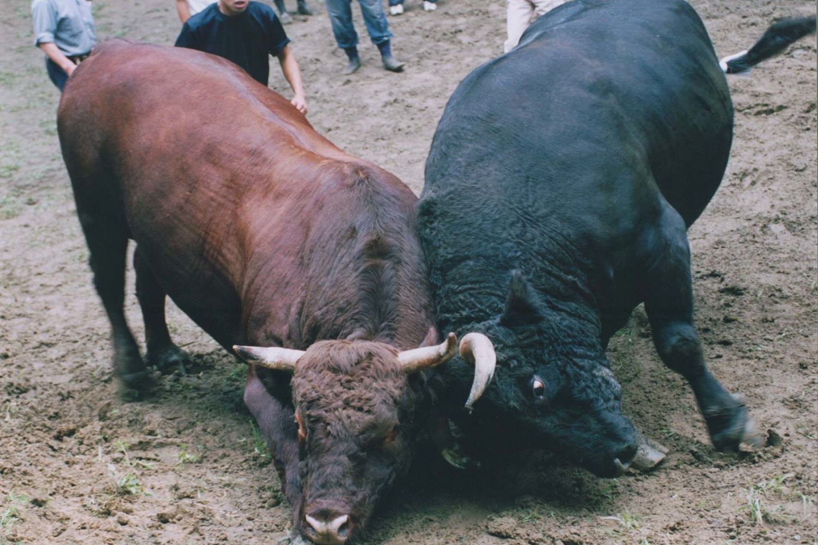 越後山古志「牛の角突き」大会手心出汗!超過一噸的鬥牛之間的碰撞